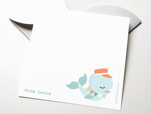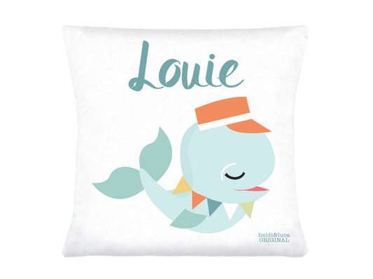 Louie the little retro whale makes big waves & loves splashing in the blue sea!