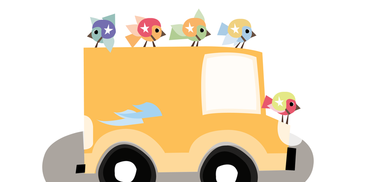 The Little Birdies are up to mischief again! Now they're flying around town on top of a van, loving the feel of 'Wind In Their Feathers'!
