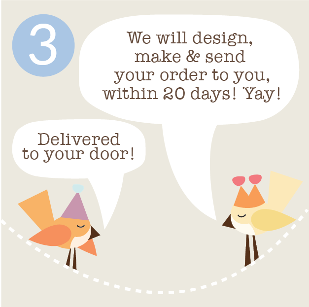 For our fabric range, the entire process, from placing your order to dispatch, will take no more than 20 days. For paper products, we will have them shipped as quickly as your little one can scream 'Ice cream!'